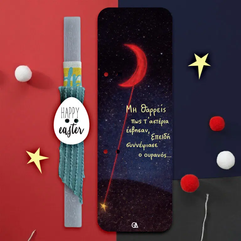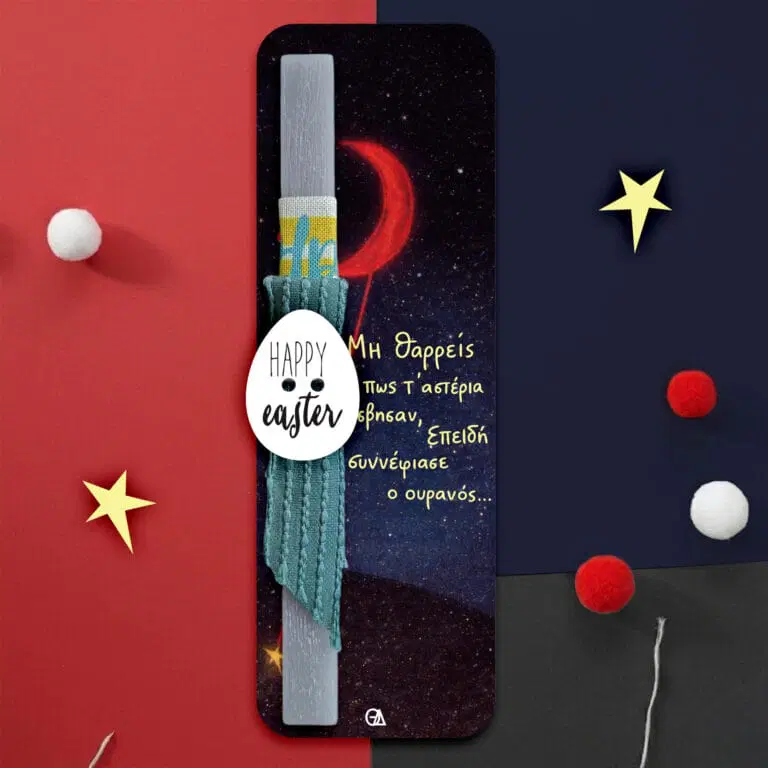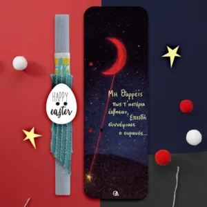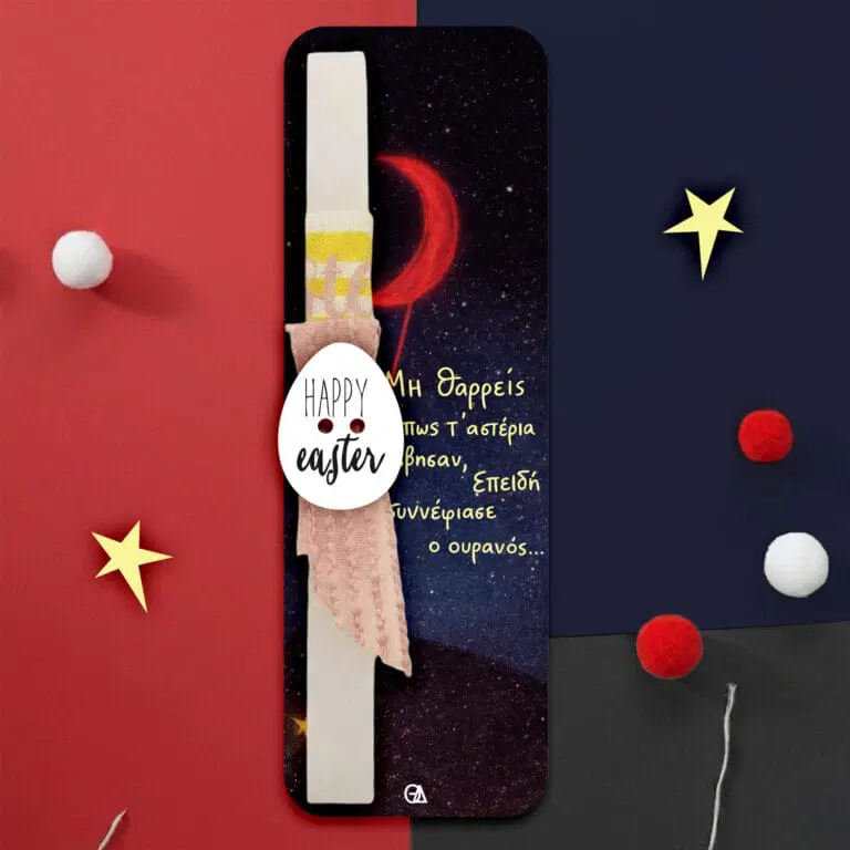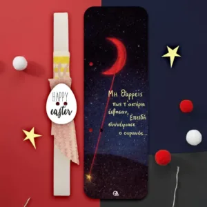 Λαμπάδα Κόκκινο φεγγάρι και άστρο με στιχάκι