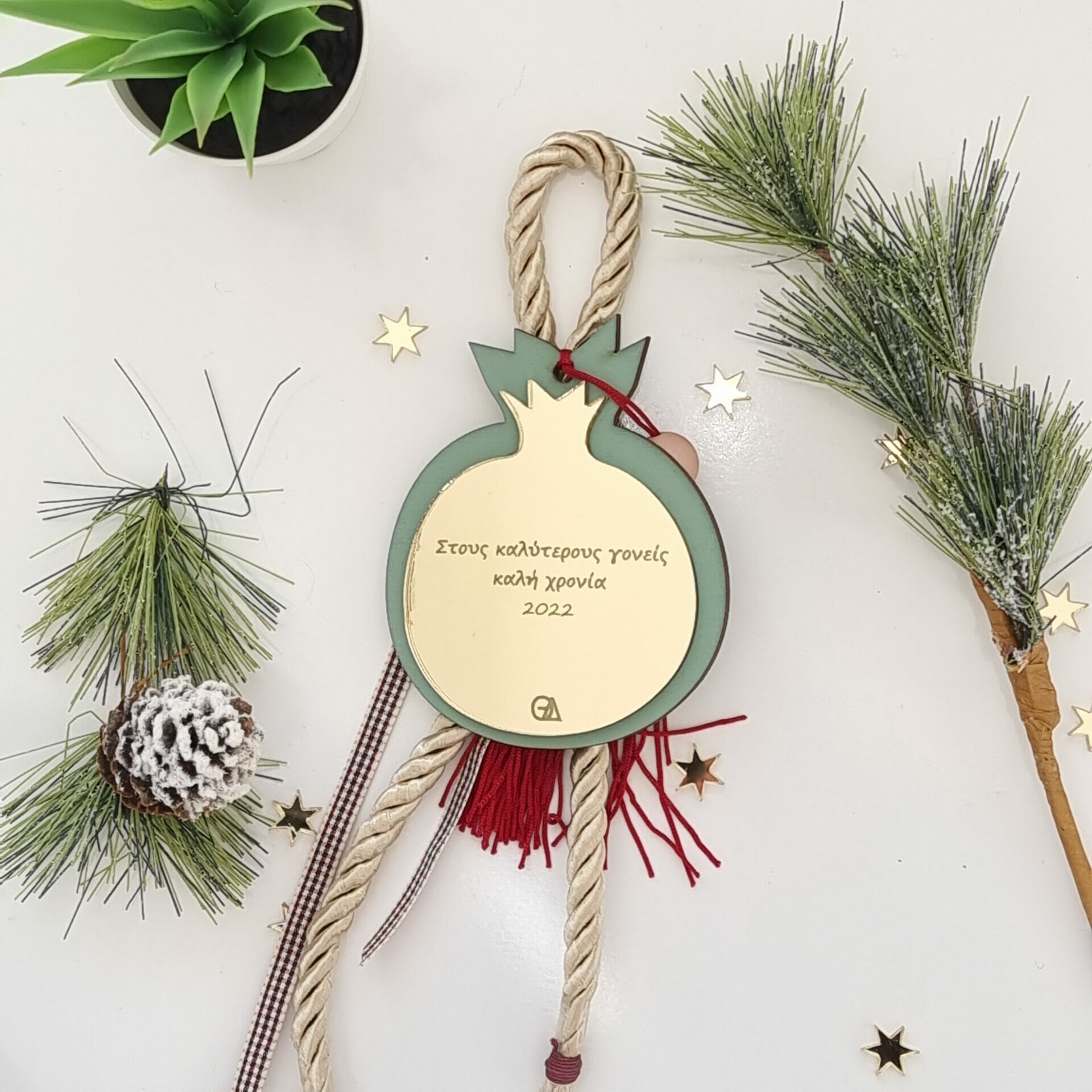 Γούρι ρόδι σε πράσινο χρώμα (Γράψε την δική σου αφιέρωση)