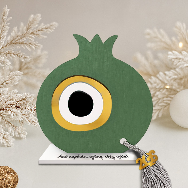 Γούρι σε βάση ρόδι με ματι πράσινο